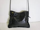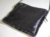 まだら模様のムートンと豚革のポシェット(黒xグレー)