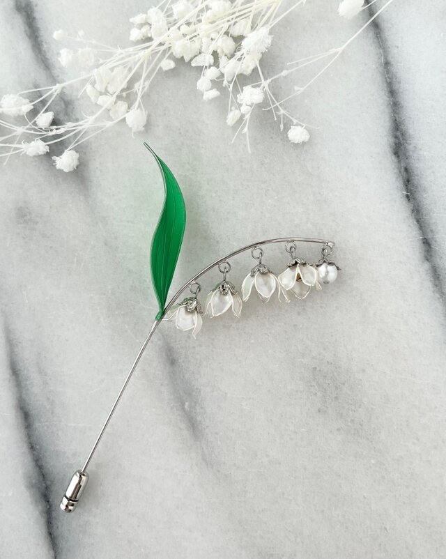 小さくて可憐な花が揺れる君影草(すずらん)のハットピンを