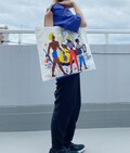 カラフルで楽しい海辺の人々がプリントされた大きめトートバッグです。