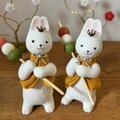 春爛漫【福福うさぎ (右肩抱え濃黄服)お花見団子セット】正絹縮緬人形 春 桜 三色団子 コンパクト お花見飾り