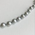 貝素材の丸玉に、オリジナルパール塗料にて何層にも渡り重ね塗りを施した日本製貝パールネックレスになります。パールの間1つ1つ丁寧に結び目を加えたオールノット加工にて仕上げました。パールカラーはきめ細かい質感と鮮やかな艶感に虹色の磨き加工が施されたグレーパールとなっております。フォーマルにちょっとしたアクセントにとお使い頂きやすいデザインとなっております。サイズはスタンダードな直径約8mmで、長さは標準的なプリンセスサイズの全長約42cmにしました。