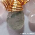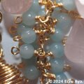 耳に近い部分には、此方は桜の花を引き立てる事が出来るようにアマゾンナイトの小さなラウンドをたわわに下げ、一番下に大粒のローズクォーツのドロップブリオレットカットを下げています。