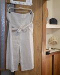 酒屋さんの前掛けのような…と思いきや、後ろまで包まれるデザインのサロンエプロン。