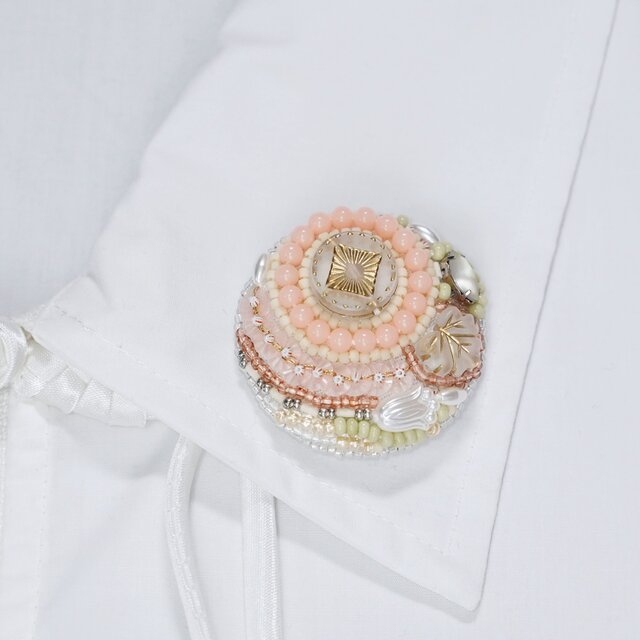 隙間無くきっちりビーズで刺繍を施し、宝箱を開けたようなブローチに仕上がりました。