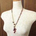 おいしそうな赤みピンクのチェコガラスや天然石で作った使いやすい前留めタイプのネックレスです。