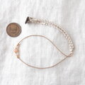 輝きのある淡く優しいピンクオレンジのムーンストーンにゴールド色のグラスビーズを添えてベージュ色のシルクコードで繋いだ上品な雰囲気のショートネックレスです。