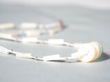 シーブルーカルセドニーにホワイトシェルを合わせた編み込みのショートネックレス