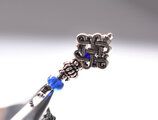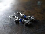 エンドレスノットとブルーアンティークビーズ、インドシルバーの小さな鈴のピアス