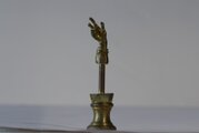 とってもミニチュアだけど精巧なクマがやってきました。 昔、実家にあった木彫りの熊を思い出しましたが、こちらはゴールドで風格があります。 ドアフォンの上が、同じ目線になりました。