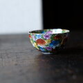 見込みに丑(牛)◆チャイナレトロで可愛い。中国製造 干支 色絵金彩小ぶり猪口 花尽くし シノワズリ