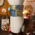 【 和洋折衷 レトロ 古着 帯 着物 和装 リメイク サッシュベルト ウエストマーク ハンドメイド OB-54 】