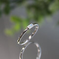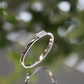 細身のリングに石を埋め込むようにセッティングされたデザインリング。