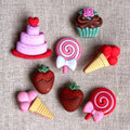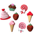 ケーキ、アイス、カップケーキ 、チョコ苺、飴のボタンです。