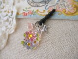 グラスフュージングという技法で丁寧に手作りいたしました、小さなピンクとパープルのお花の、イヤホンジャック用アクセサリーです。