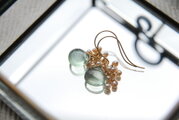 グリーンフローライトのマロン形と淡水パールを合わせたピアスです