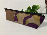 柿渋で染めたプリント生地でスマートなペンケースを作りました。