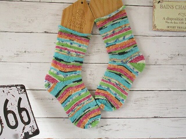ドイツのブランド Pro Lana 306 懐かしのアイスキャンディーで編んだ靴下です。