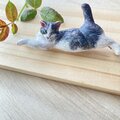 リピートです。今度の作品も大変可愛く、ぬくもりを感じます。木彫りですので軽やかなのも良いですし、毛並みがまるで本物の猫のように見えます! 付けない時は前回購入したブローチとセットで飾ります。 今回もありがとうございました!