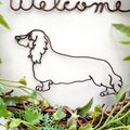 ロゴやダックスフンド部分のワイヤーは握りどめ工法のクラフトです。
