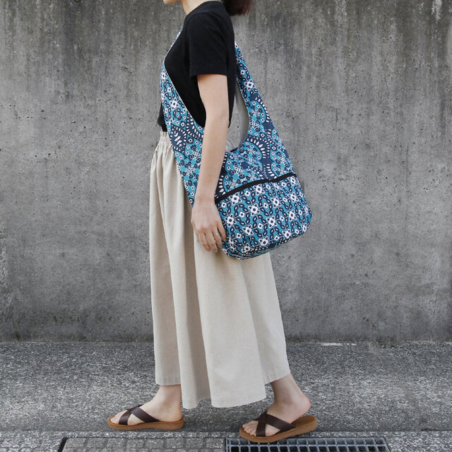 アフリカ布のショルダーバッグ(チューリップ)カンガ 大きめ 斜めがけ たすき掛け ヨガ ピラティス