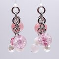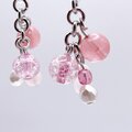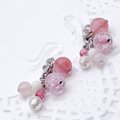 ストロベリークォーツにピンク系のクラック水晶(爆裂水晶)、ローズクォーツなど、全体的にピンクでまとめたピアスです。