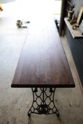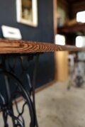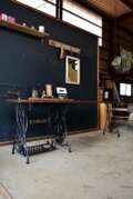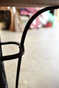 右端の補助脚は、ワンオフ製作の鍛造脚です。美しいシンガーの脚を流用しつつ、鍛造で上手く繋ぎ合わせることで、もともと一つの脚のように見えます。