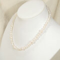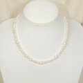 本真珠(淡水パール)のネックレス(長さ46cm、マグネット、ホワイト、ナチュラルカラー、セミバロック、ラインストーン)