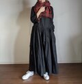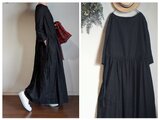 リネンなら、ブラックのマキシ丈でも重くならずに
