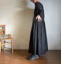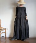 マキシ丈 リネン ギャザーワンピース_ブラック