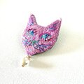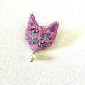 "Pinky oriental CAT " オリエンタルな雰囲気を持つ猫ちゃん 刺繍猫ブローチ