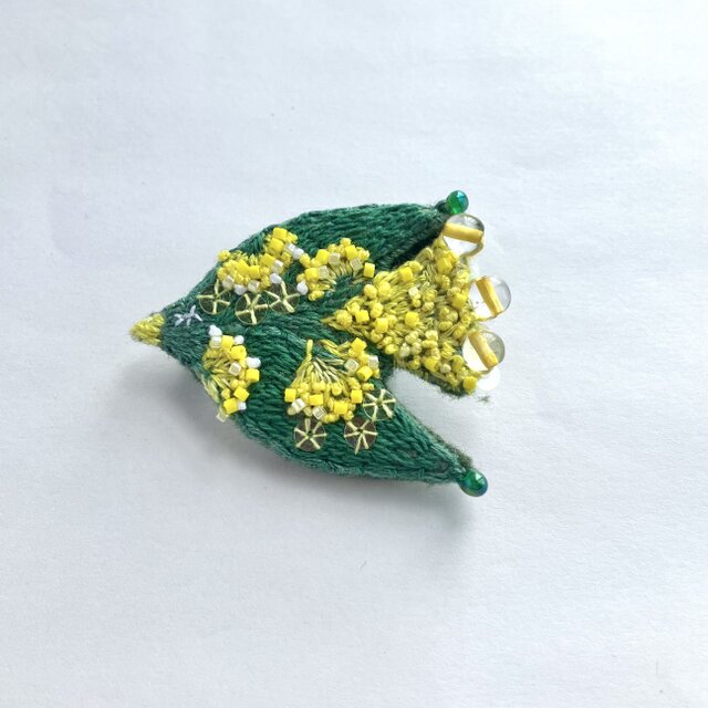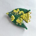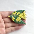 黄色いお花を纏う鳥ブローチ(ミモザ カラー)