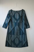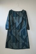 昭和にかけて作られたと思われる絹の縮緬型染めの蝶に流水の着物を丁寧にほどき、洗い、シンプルなワンピースを作りました。