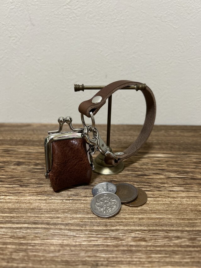姫路レザー親子miniminiコインケース◆焦げ茶 革財布 キーホルダー 小物入れ