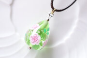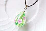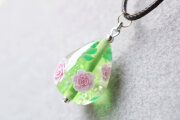 泡を入れた黄緑色の地に、薔薇を咲かせたとんぼ玉です。