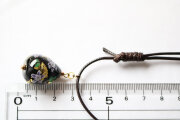 金箔を入れた黒色の地に、オダマキを咲かせたとんぼ玉です。