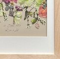 白を基調とした背景とのコントラストやフレームの木目が、花々の鮮やかさを際立たせナチュラルで可愛らしい印象を放ちます。