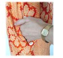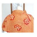 鮮やかなオレンジのの花柄柄総絞り着物をリメイクした、