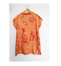 6 1点物 チュニック ツイストタートルネック オーバーサイズ 総絞り着物リメイク オレンジ ポケット有
