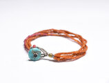 アンティークオレンジシードビーズと金赤ホワイトハーツの4連ブレス(ターコイズ留め金)