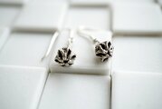カレンシルバーのお花のつぼみは幾度となく登場しているのですが、今回は、釣り鐘みたいな形をした(私には香辛料のハッカクに見えてしまうのですが)ユニークな形のお花ピアスです。