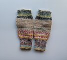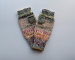 可愛らしい模様が出る段染め糸にメリノウールの単色糸を引き揃えて編んだハンドウォーマーです。