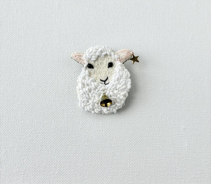 "もこもこ羊の刺繍ブローチ"