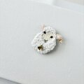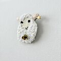 羊の毛並みは、もこもこをひとつひとつお米のような形に丸くループさせるステッチを丁寧に、全体を作りました。中にはちいさなきらっと輝く角砂糖のようなガラスビーズと乳白色のやわらかな色合いの丸みのあるビーズををたくさん散りばめ、やわらかな印象と共にきらっと輝くおしゃれな毛並みにしました。
