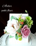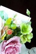 ☆クレイフラワー作品(バスケットいっぱいの夏)☆本日、自然な感じでイメージ通りの愛らしいバラのリースが届きました、さっそく壁に飾らしていただきます。 T.S