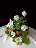 ☆クレイフラワー作品(バスケットいっぱいの夏)☆本日、自然な感じでイメージ通りの愛らしいバラのリースが届きました、さっそく壁に飾らしていただきます。 T.S