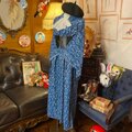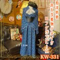 【 和洋折衷 レトロ 古着 洗える 化繊 着物 和 モダン ハンドメイド リメイク ワンピース ドレス 帯サッシュベルト 素敵な小紋×かっこいい×青/ブルー×白/ホワイト系 KW-331 】