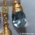 素材:宝石質スカイブルートパーズAAA ペアシェイプファセットカット、ベリル タンブル、イエローダイヤモンド チップ、その他すべて14kgf
