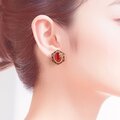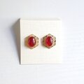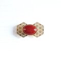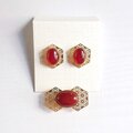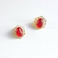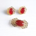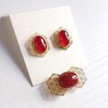 濃い赤色が印象的なレッドアゲートの帯留めとピアスまたはイヤリングのセットです。