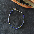 ラピスのブルーが鮮やかで、カジュアルにもきれいめにも合わせやすい万能ブレスレットです。
