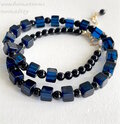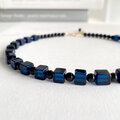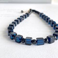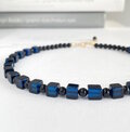 サファイヤカラーに染まったキューブ型の綺麗なアンバー(琥珀)
